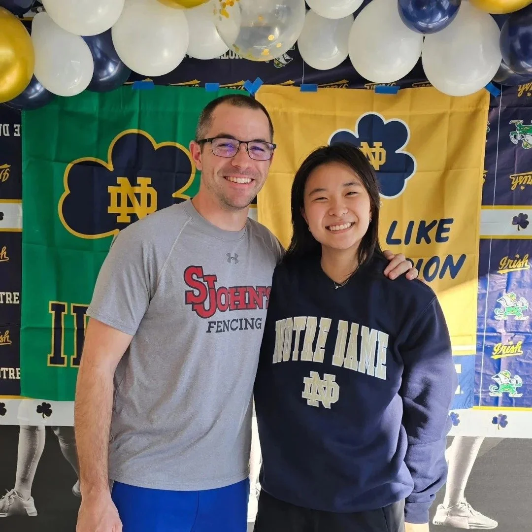 Congratulations to Zoe Kim recruited to Div1 Notre Dame Fencing Team for 2025! We are so excited for her new journey as she joins the Notre Dame family. She has been at Swords over 10 years with Coach Tigran and she will be sorely missed with her bright smiles, humble spirit, and dedicated teammate. Thank you to Coach Tigran for 10 years of support and gift of his coaching that only he can do. Thank you to all our Swords coaches, Coach Nana for her fire, Coach Misha for his analysis, and Coach Trevor who convinced Zoe to stay lefty. We wish Zoe great success at her new home and know she will bring the same dedication to Notre Dame!